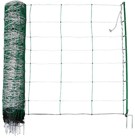 Električna ograda - mreža za ovce, s razmakom od tla. Izrazito postojani stupovi izrađeni od stakloplastike, kojima jednostavno manipulirati zahvaljujući malom promjeru i težini. Uređaj za napajanje električne ograde - mreže, nije uključen.